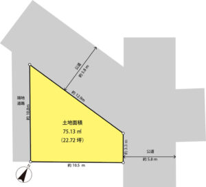 | 土地面積 | 75.13m²(22.72坪) | 私道負担面積 | 無し |